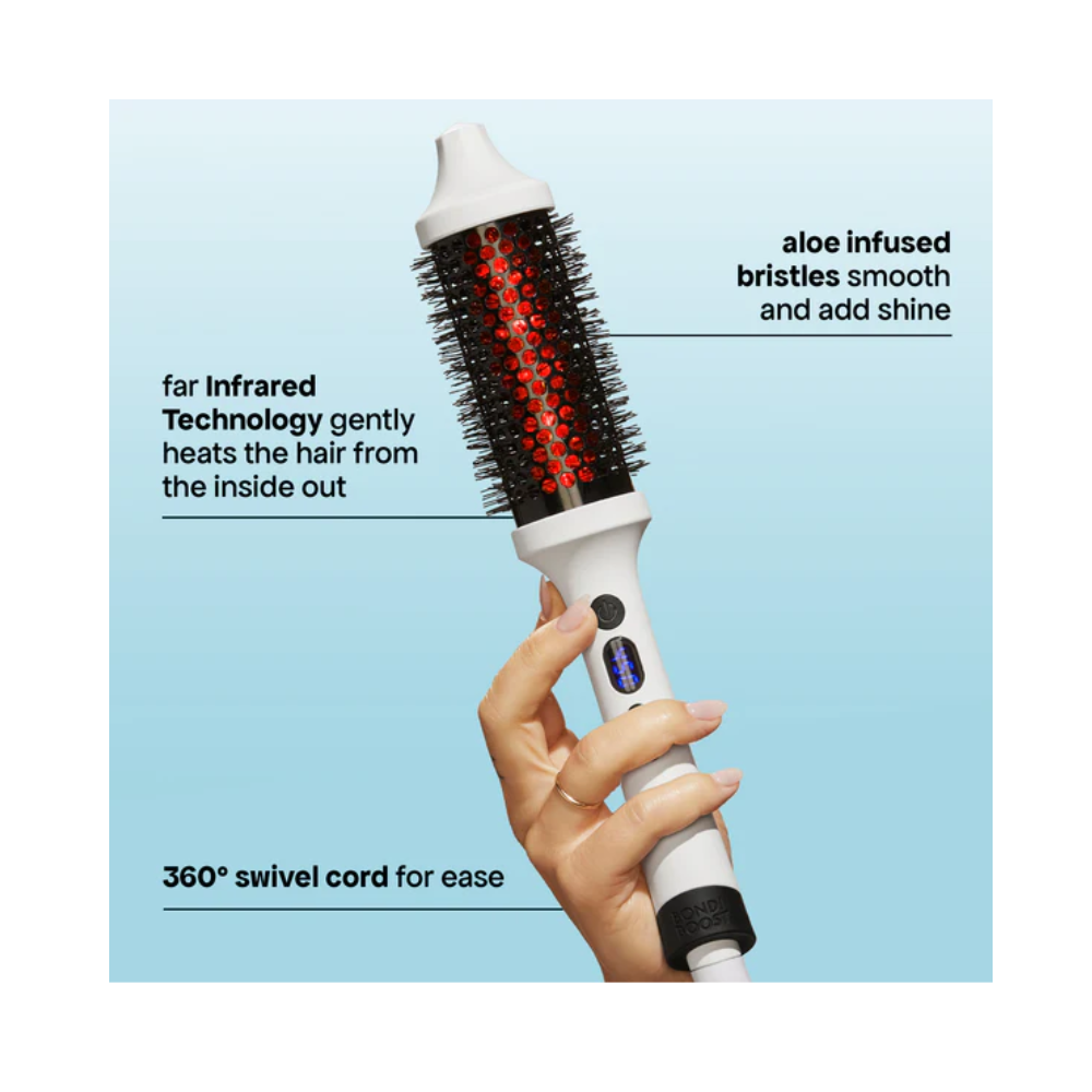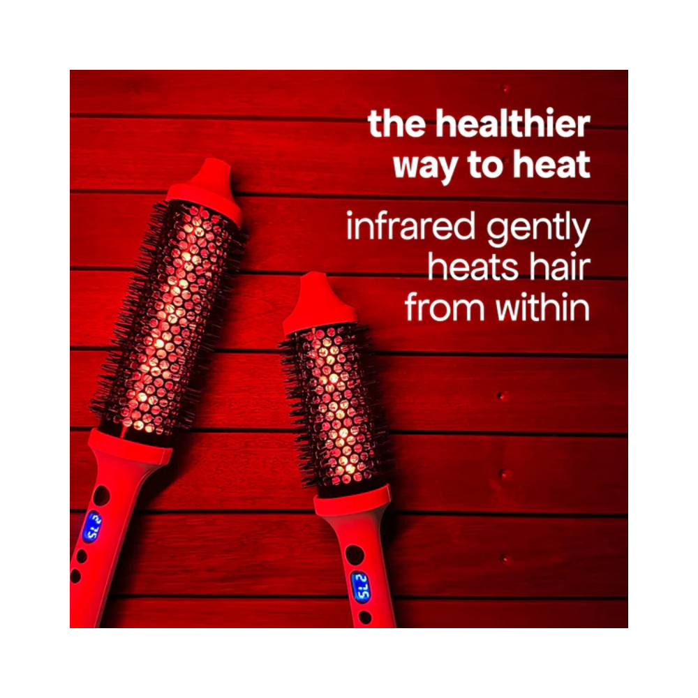 Heat style without the damage. Get a sleek, 90s-inspired blowout in minutes—no blow dryer needed. Designed for dry hair, this hot round brush locks in moisture with negative ions, leaving hair soft, smooth, and frizz-free. Thanks to infrared technology, your hair stays healthier over time—so you can style without the red flags. Now available in two sizes, 101mm is perfect for shorter hair and 146mm is perfect for longer, thicker hair types.